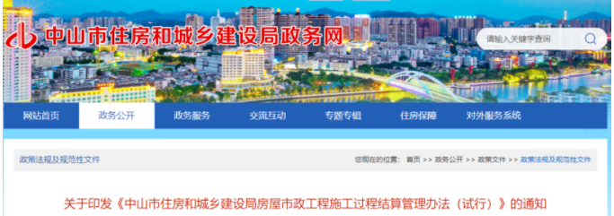 近日,中山市住建局印發(fā)《中山市住房和城鄉(xiāng)建設(shè)局房屋市政工程施工過程結(jié)算管理辦法(試行)》,自2023年1月1日起實(shí)施。